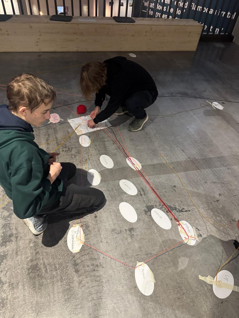 Zu Beginn stand die Ausstellung der Künstlerin Amna Elamin im Mittelpunkt. Elamin, die aus dem Sudan stammt, beschäftigt sich in ihren Werken mit Erinnerung, Identität und den Erfahrungen von Migration. Die Schülerinnen und Schüler besuchten zunächst gemeinsam eine ihrer Installationen. Anschließend kam die Künstlerin persönlich zu einem Gespräch dazu.