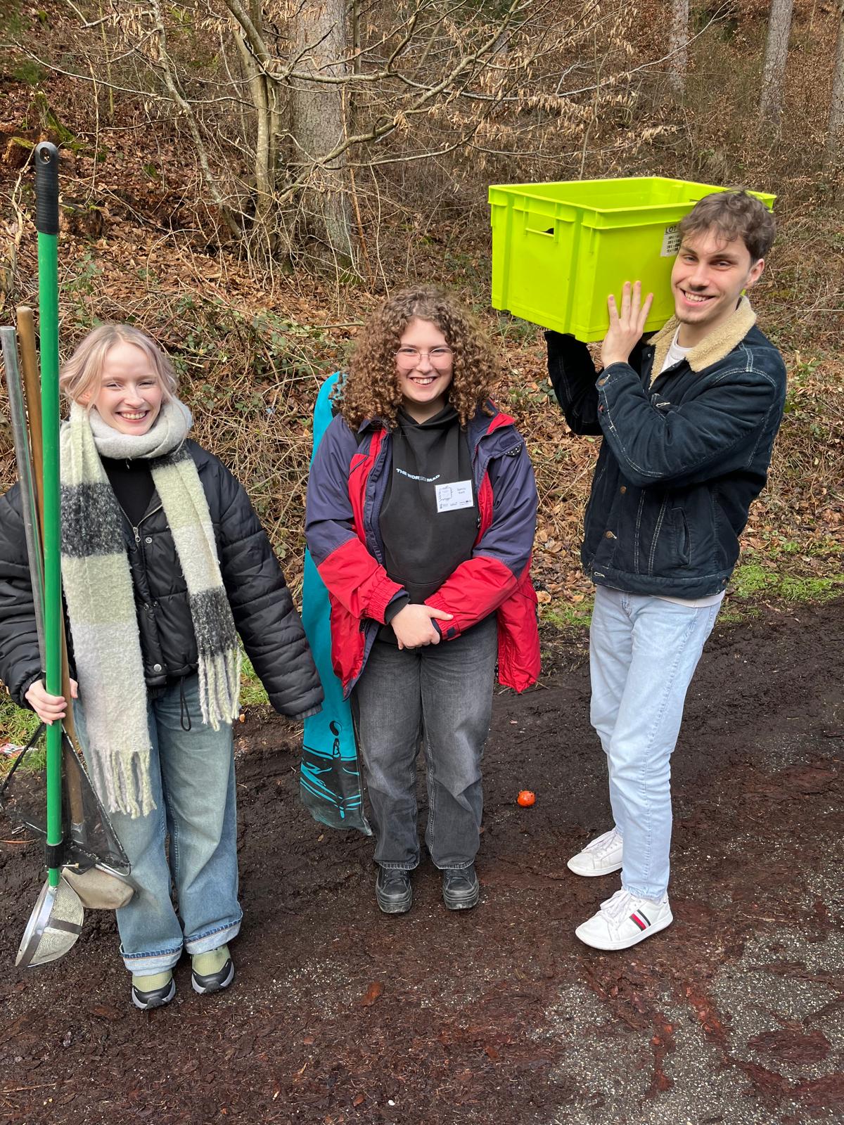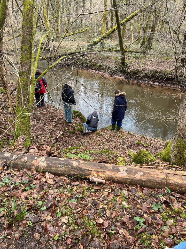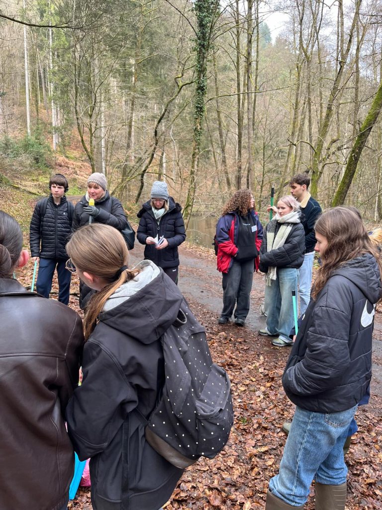 So ging es am ersten Tag nach einer kurzen Einführung in die Konferenz, die wie alle Veranstaltungen bilingual verlief, motiviert und interessiert in die Workshops, die jeweils mit einer Exkursion begannen. Zwei Workshops standen zur Auswahl: Wald und Feuchtgebiete. Die Schüler und Schülerinnen der JDS Daniel Poltoratskyy, Lillith Oefverberg und Samira Koch (alle TGG 13) hatten sich für das Thema Feuchtgebiete entschieden. Ein Bus brachte die Jugendlichen und ihre Französischlehrerin Petra Geisert an die Wieslauter. Unter Anleitung von Pascal Gérold der Maison de la nature du delta de la Sauer et de l’Alsace du Nord sowie von Susasse Pimentel vom Naturschutzzentrum Karlsruhe-Rappenwört machten sie sich bei eisigen Temperaturen und mit Gummistiefeln ausgerüstet an die Arbeit. Dabei waren die Jugendlichen in deutsch-französischen Teams tätig.