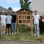 9. Juli ’25: Schüler der Umwelt-AG stellen Insektenhotel und Sammelbehälter für Plastikpfandflaschen auf (siehe „Alle Sechsbeiner willkommen“ und „Umwelt-AG baut Sammelbehälter“