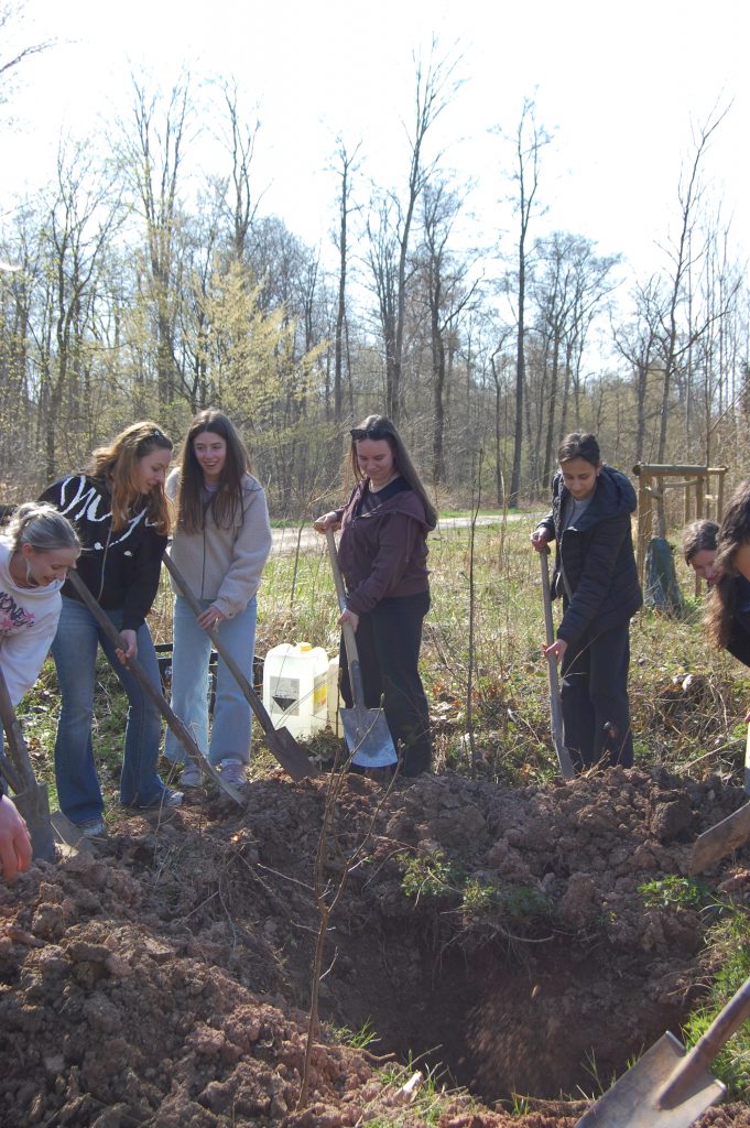 Eine nahezu fünf Meter hohe Zerreiche durften die Abiturientinnen und Abiturienten der Josef-Durler-Schule dieses Jahr im Rastatter Stadtwald pflanzen. Wie in den letzten beiden Jahren hatten Uwe Kirst, Kundenbereichsleiter Forst bei der Stadt Rastatt, und seine drei Mitarbeiter bereits Vorarbeit geleistet und ein Loch ausgehoben.