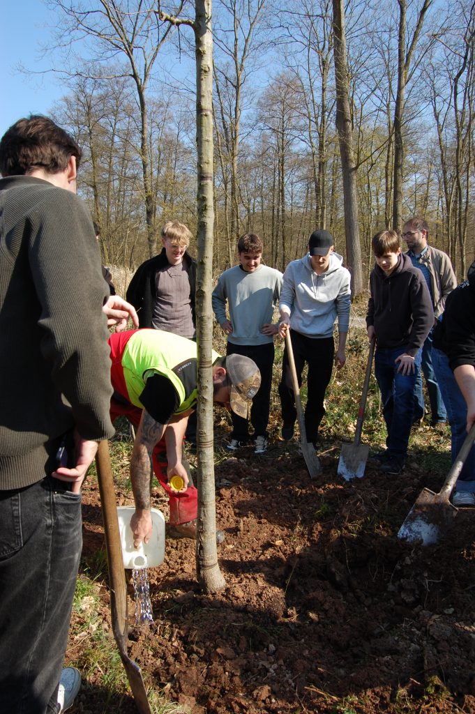 „Kommen Sie immer wieder einmal vorbei und schauen Sie sich an, wie Ihr Baum sich entwickelt“, lud Förster Uwe Kirst die Schülerinnen und Schüler abschließend ein und spendierte Sprudel und Apfelschorle nach getaner Arbeit. „Sie haben hier eine Erinnerung, die in die Zukunft hineinreicht und ein Menschenleben überdauert“.