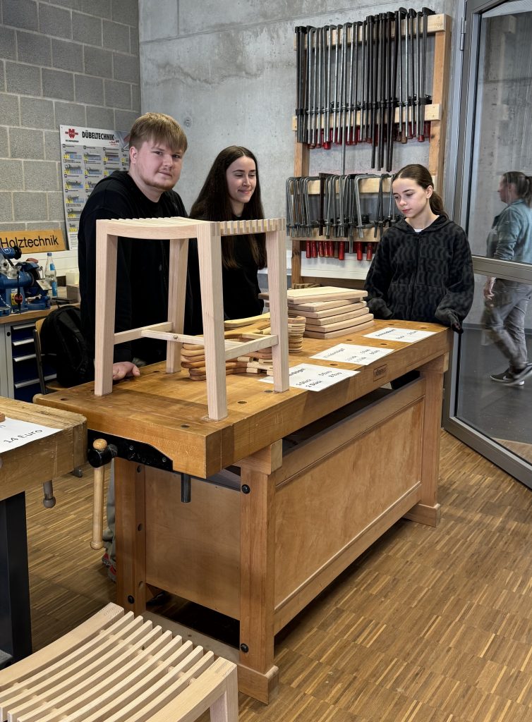 Zu den Highlights des Tages gehörten unter anderem die Ausstellungen in den Werkstätten: Die Fachbereiche Holztechnik und Metalltechnik zeigten handgefertigte Werkstücke und demonstrierten das praktische Arbeiten an der Werkbank, an Maschinen und in der Schmiedewerkstatt.